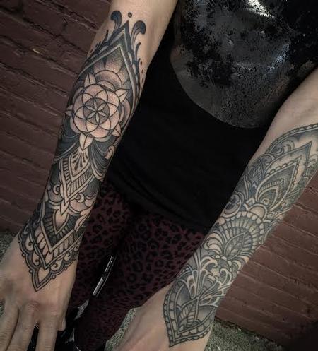 Laura Jade - Mandala with henna inspired designs neck tattoo