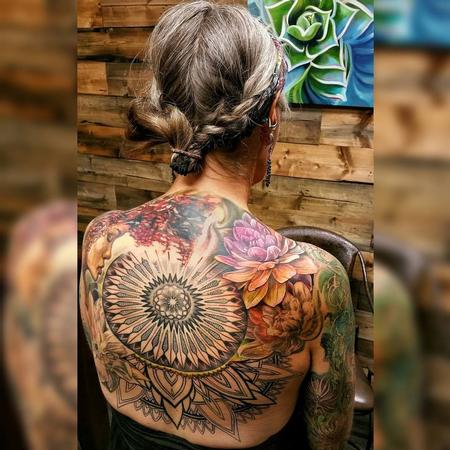 Joey Pang - Color Temple Guardians Back Tattoo