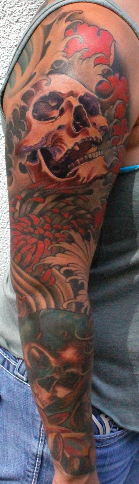 London Reese - Red Skull and White Rose Color Realism Tattoo