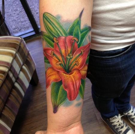 Brent Olson - realistic color hibiscus tattoo. Brent Olson. Art Junkies tattoo
