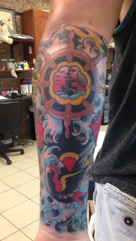 Michele Wortman - Mandala and cherry blossom half sleeve