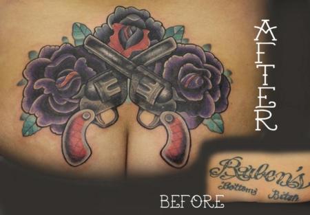 " style="background-image: url('http://www.galleryoftattoosnow.com/TattooStationMEMBERS/images/gallery/medium/537938_10150680518778175_427156657_n.jpg');">Chad Newsom - Pistols - coverup "Rueben's bottom bitch"! hahaha
