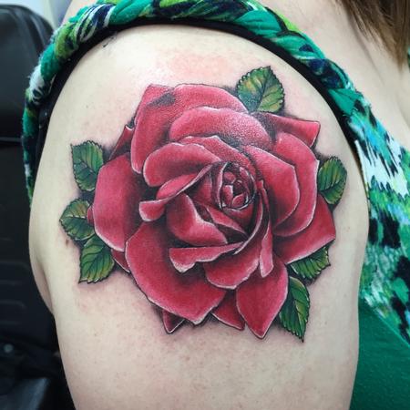 Frichard Adams - Black and Gray traditional compass with flowers tattoo. Frichard Adams Art Junkies Tattoo