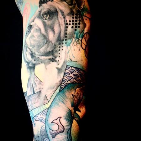 Alex Moreno - Religious Statue Jesus Christ Versace filigree tattoo
